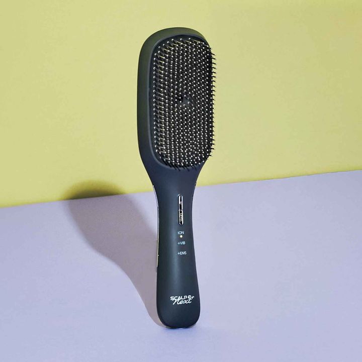 これひとつで地肌ケア、フェイスケア、ヘアスタイリング、ヘアケアの4役が実現するブラシ型美容デバイス。EMSモードでは、地肌を引き締めてフェイスラインをリフトアップすると同時に、髪がふんわりと自然に立ち上がってボリュームアップが叶います。トリートメントイオンモードでは濃密イオンが髪全体にいきわたり、サロン帰りのようなツヤとまとまりに。バイブレーションモードでは全身の疲れもオフできる。¥28,600(アンファー)