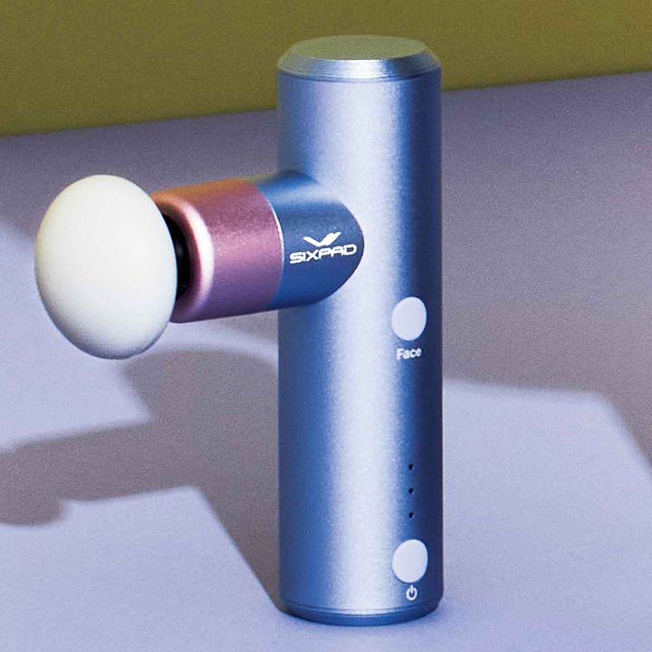 手のひらサイズ&充電式で、持ち運びしやすいパワーガン。軽量でコンパクトなのにパワフルな振動を実現。フェイス専用モードと4段階の振動が選べるボディモードが搭載されています。本体にセットされている平形金属ヘッドに加えて、顔用パッドや球形など、4種類のアタッチメントがついているので、ケアしたいパーツにあわせて効果的なアプローチができるのも嬉しい。¥13,750 ※パープル/ピンクは美容室限定販売(MTG)