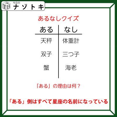 といわけで正解は「ある」側は星座の名前になっている。でした。