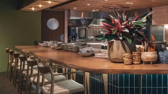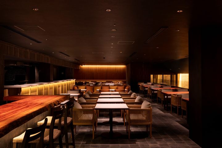 2025年10月にオープンしたばかりの店内には、ゆったりくつろげるソファ席や、石窯併設のバーカウンターなど、シーンによって使い分けしやすい席がそろう。