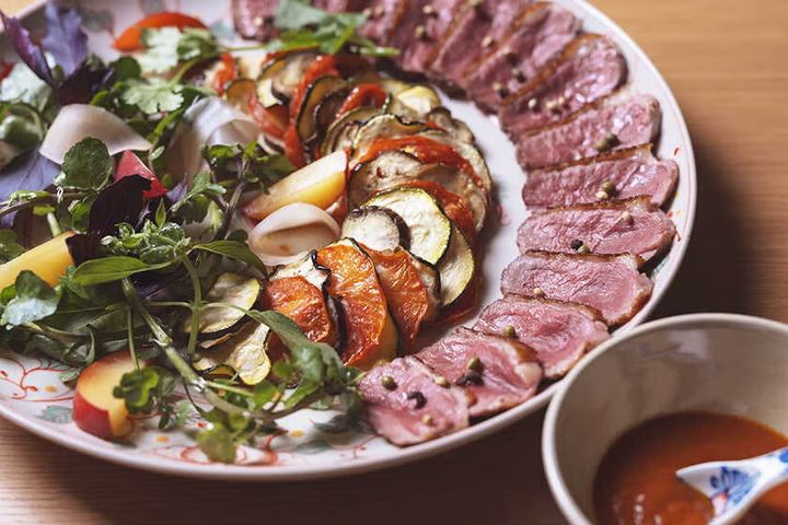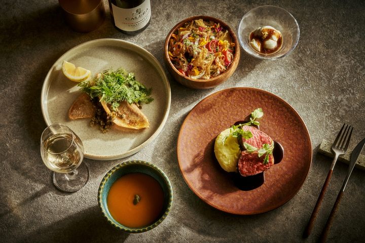 代々木上原のビストロ「メゾン サンカントサンク」や居酒屋「Lanterne(ランタン)」を担う丸山智博シェフが手掛けたこちらでは、和食にフレンチのエスプリを効かせた、独自の創作メニューが味わえる。