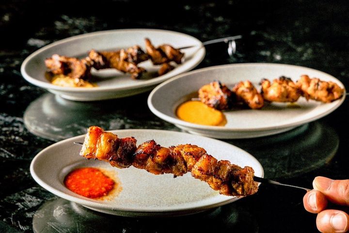 特製スパイスに漬け込んだ肉を丁寧に焼き上げたスパイス串焼き「セクワ」(¥462~)や、トマトの酸味と牡蠣のうま味が調和した「オイスター スパイシー」(¥968)、〆にぴったりのカレーやアチャールが盛られた「ダルバート」(¥880)など、そのほかにも食欲そそる新感覚のネパール料理が満載!