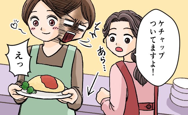 経血汚れを指摘されたことはとても恥ずかしかったのですが、幸いにもケチャップだと勘違いされていたので、私は「オムライスのケチャップがついちゃったのかしら……」と誤魔化しました。