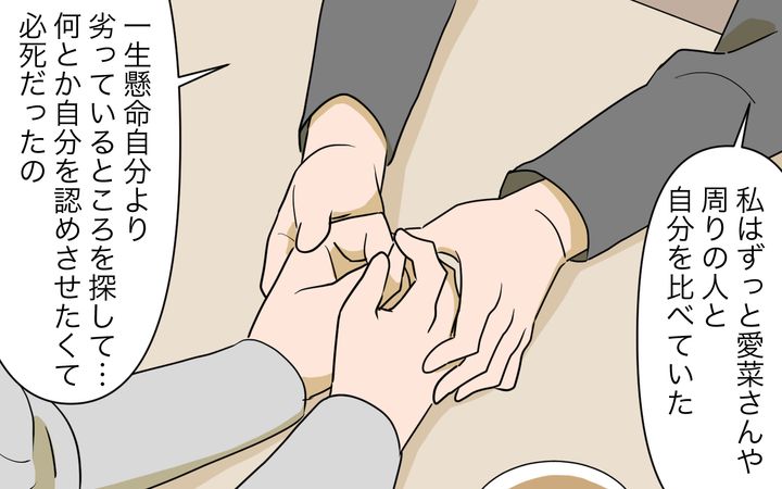 でもそんな黒い気持ちとは無縁に見えた愛菜さん自身も、「人よりも自分をよく見せたい」という感情を持っていたことを知って、これまで持っていた悪感情や自分の中の醜さを手放すことができました。