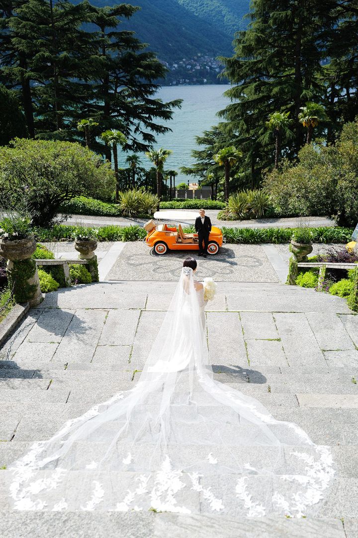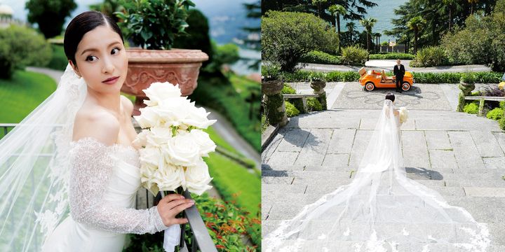 「旦那さんは余裕をもって物事を進めたいタイプ。上司みたいに『あれは終わった?』と確認が入って(笑)。でも、本当に私の好きなようにさせてくれました。コモのロケーションに合うドレスを選び、ボートやクラシックカーで撮影を。ヘアとメイクはロンドンから来てもらい、今考えると本当に大規模な撮影となりました」