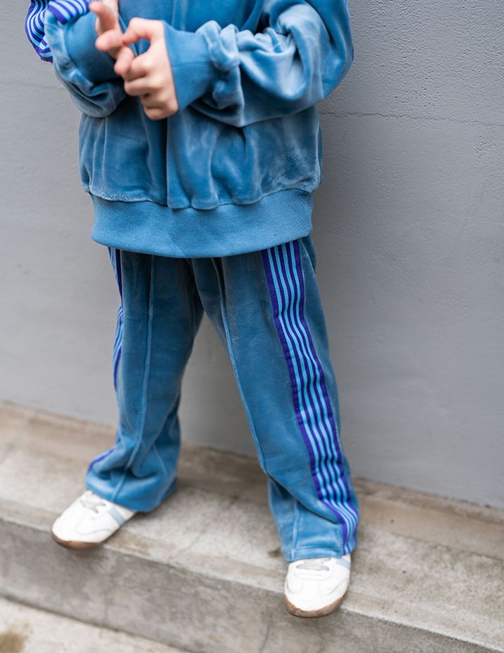ベロア素材が触り心地抜群のセットアップは、シティも公園もシーンを選ばず着られるところが嬉しい! ハンサムなダウンで全体をぐっと引き締めれば、こなれたムードが漂うシティな装いにアップデート。