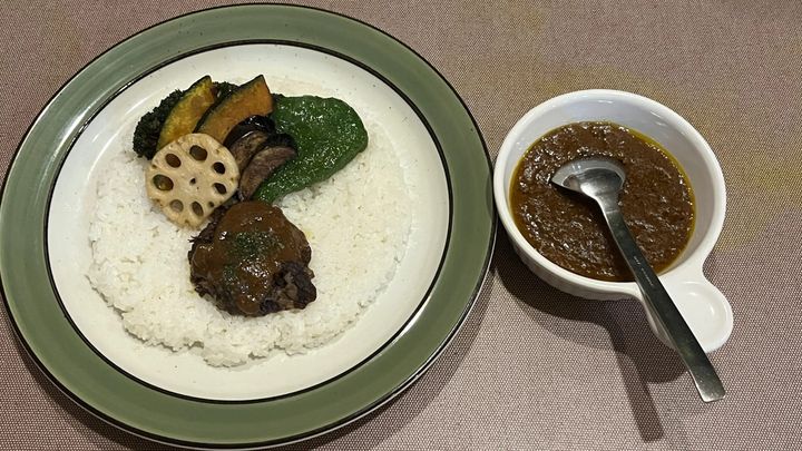 数口分のルーがかけられていて、その後は、別添えになっている器から盛り付けるスタイル。
