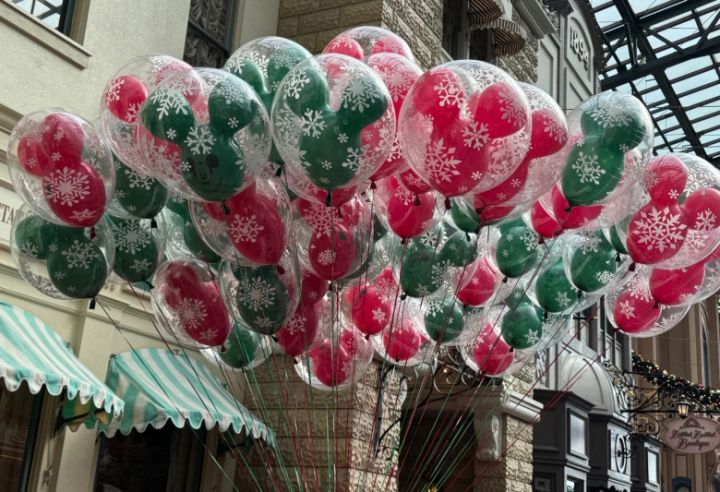 ワールドバザールの中心に約15mの巨大なクリスマスツリーが登場。まだパークに入園したばかりですが、クリスマス一色なパークに早くもワクワクが止まりません。さらに個人的に興奮したのが、クリスマス仕様のバルーンが登場していたこと!