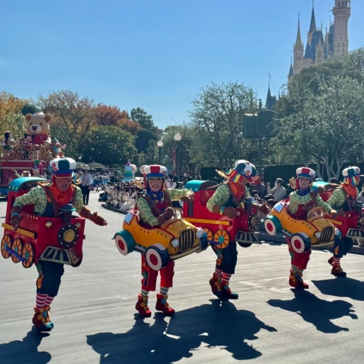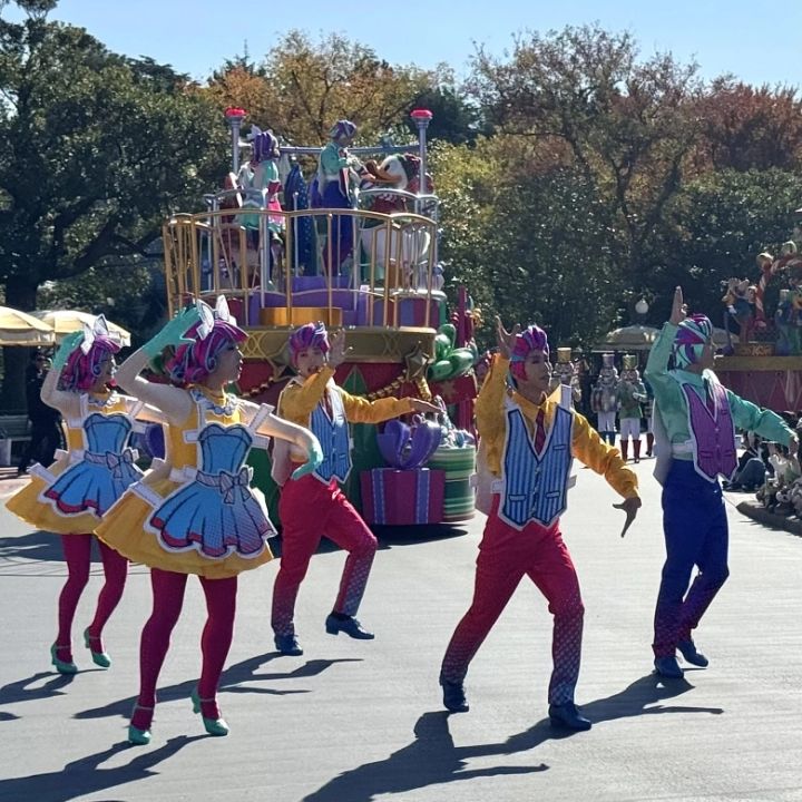 キャラクター達のキュートな様子に、peggyさんと終始大興奮。さらに、個人的にパレードをさらに盛り上げるポイントだと思ったのが、ダンサーさん達の素敵な笑顔です!表情豊かなファンサービスに思わずこちらもニッコリ。見てください、この素晴らしい笑顔♪