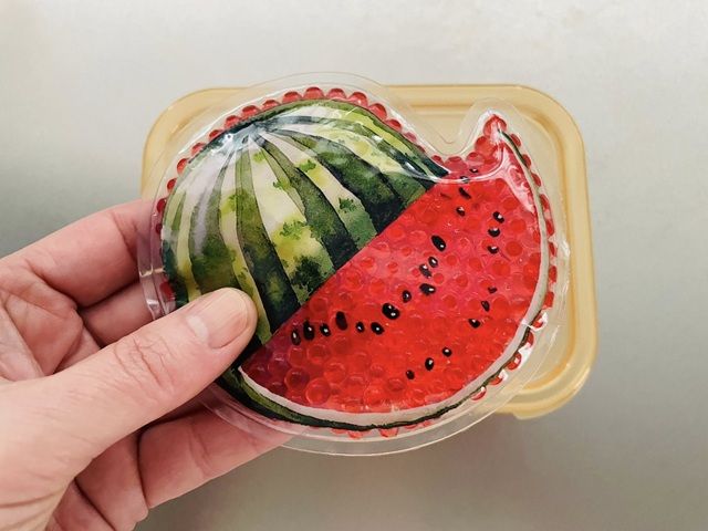 冷凍庫で6時間以上冷やしてから使うタイプ。かわいいスイカデザインで、バッグに入っていても気分が明るくなります。水滴が出にくい仕様で、バッグの中が濡れにくいのもうれしいポイント。