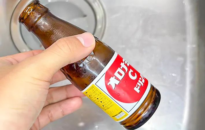 飲み終わった瓶は、自治体によっては、捨てる前にラベルを外す必要があります。