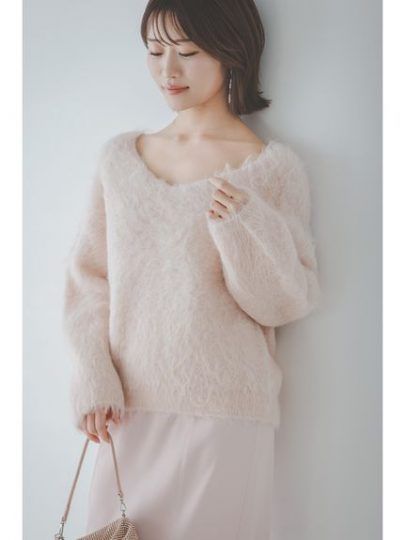 『SNIDELハイクオリティライン』ふんわり柔らかなスリアルパカ素材のニットプルオーバー。広めのVネックがデコルテラインを美しく演出します。冬コーデのワンポイントに取り入れたい、まろやかな色味のピンクが女らしい印象をアップ。