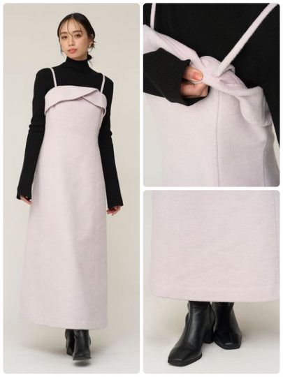 程よくフィット感のあるトップス部分とさりげないフレアスカートのメリハリでスタイルアップを叶えてくれるベアワンピース。あたたかみのあるウール混の生地がシーズンムードを高めてくれます。肩ひもは長さの調節でき、取り外しも可能。今の時期ならレイヤードコーディネートがおすすめです。