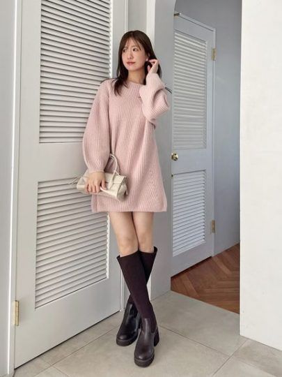 オフショルでも着られる、柔らかなニット生地のミニワンピース。デコルテラインを美しく見せる大きなボートネックで抜け感を演出。縦に流れるリブ編みと、ボリューミーな身頃や袖で気になるボディラインをさりげなくカバーし、着痩せ効果も抜群。伸縮性があり、オフショルでもご着用いただけるデザインです。