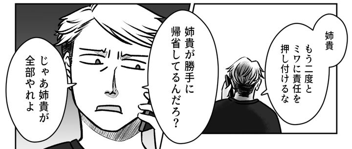 私はミワ。去年の正月、義姉ケイコさんから「気が利かない」と非難された私は、次回からはケイコさんが自分でやるよう言い放ちました。夫ダイキがすぐに私を擁護してくれたのが大きな支えとなり、今年は宣言通り何もしないということを決行。しかしケイコさんが義実家に到着した直後、ダイキのスマホには怒りのメッセージが。ダイキは、「前回ミワが伝えた通りにしたまでだ。自分でやれ」と冷静に返信してくれました。自分の言動に責任をもつという発想のないケイコさんに、私は呆れを通り越して冷めたため息をついてしまいました。