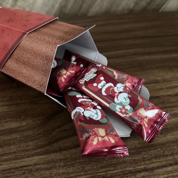 かわいいキャラクター達が描かれていて、見ているだけでワクワクしてしまいますよね。味は通常バージョンと同じ甘いミルクチョコレートとホワイトチョコレート味の2種類ですが、このデザインはクリスマスの時期にしかゲットできないのでお見逃しなく!