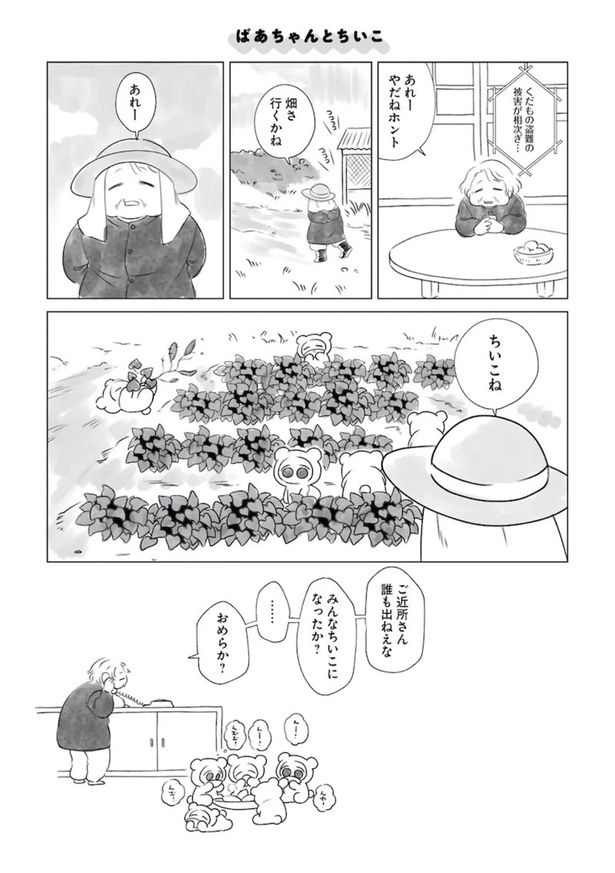 ご近所さんが謎のかわいい生き物になり…。おばあちゃんと野菜を売ったら大繁盛!/人類の半数がちいこになった1③