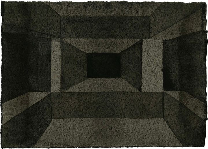 ゴームリーが構想した《ROOM》の内部《Interior I》(2014)。<em>Interior I</em>, 2014, carbon and casein on paper, 13.9 ×19.4㎝ Hearst Owned