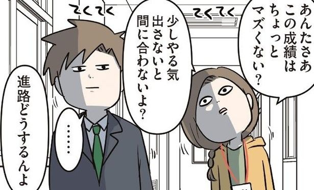 長男・えむおは高校2年生の冬になっても進路が決まっていなかった。塾には行っているものの帰宅するとすぐゲームをするような生活をしていたため、周りばかりが焦っていると、実はそれなりに行きたい大学はあると告白し、模試の判定はDに近いEということから「自分はもう少し伸びる」というよくわからない自信を見せる。そんな超ポジティブな彼だったが、学校や塾の教師の言葉と、成績を上げ始めた友人たちの様子、反対に全く伸びない自分の模試の判定を見てようやく尻に火がつくのだった。