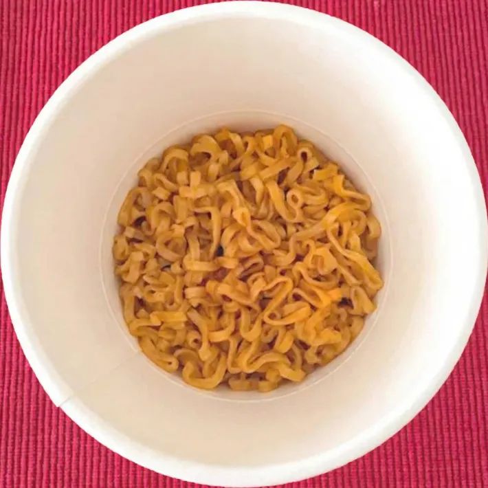 『カップヌードル パンプキンパイ味』は汁なしタイプで、麺がソースに絡まった一品です。