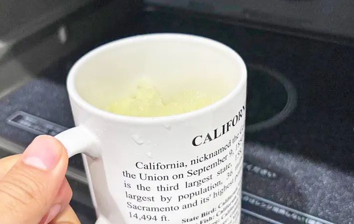 アイスをマグカップに入れ終わったら、電子レンジで加熱します。