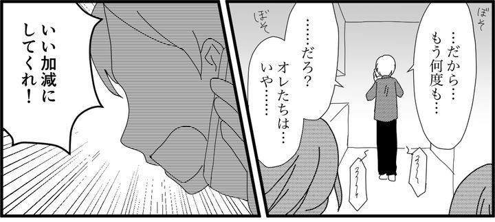 私の心臓がドキドキと高鳴りはじめました。両親も、夫の険しい表情と私の不安そうな様子を見て、心配そうにしています。キッチンから夫の声が聞こえてきました。最初は抑えつけるような低いトーンだったのですが、徐々に感情を帯び始め、語気が強くなっていきます。