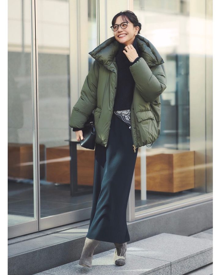 12月16日(火)、これからの季節欠かせないダウンを通勤で使うなら、ショート丈がとても便利。どんなボトムスともバランスが取りやすいのが魅力です。黒アイテムが増えがちな冬だからこそ、カーキのダウンは意外と着回しが利く万能カラー。タートルニット×スカートのきれいめ合わせに羽織れば、程よいミリタリー感が加わって、大人の通勤カジュアルがぐっとこなれます。
