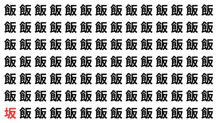 たくさんの「飯」の中に、よく似た別の漢字が1文字だけ隠れています。
