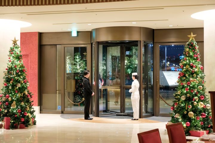 吹き抜けのロビーには今年も堂々とした約6メートルのクリスマスツリーが登場しています。朝食、アフタヌーンティーからディナーまで楽しめる「ザ・ロビー」、待ち合わせなどに使われるソファからもゆったりと眺めることができるメインツリーです。
