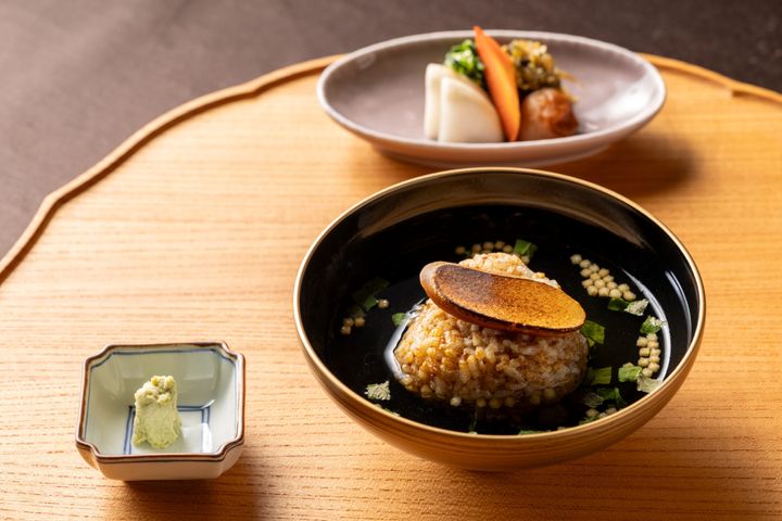 お食事には滋賀県のオーガニック米を使用するなど、地域の魅力溢れるメニューが予定されています。飲み物には、滋賀県の自然環境を活かした酒造りに取り組んでいる福井弥平商店の「萩乃露 純米大吟醸 黒ラベル」や、松瀬酒造の「松の司 純米大吟醸 竜王山田錦」がラインナップ。冬に旬を迎える地域料理と滋賀県の酒蔵が手掛ける名酒とのマリアージュが提案されます。