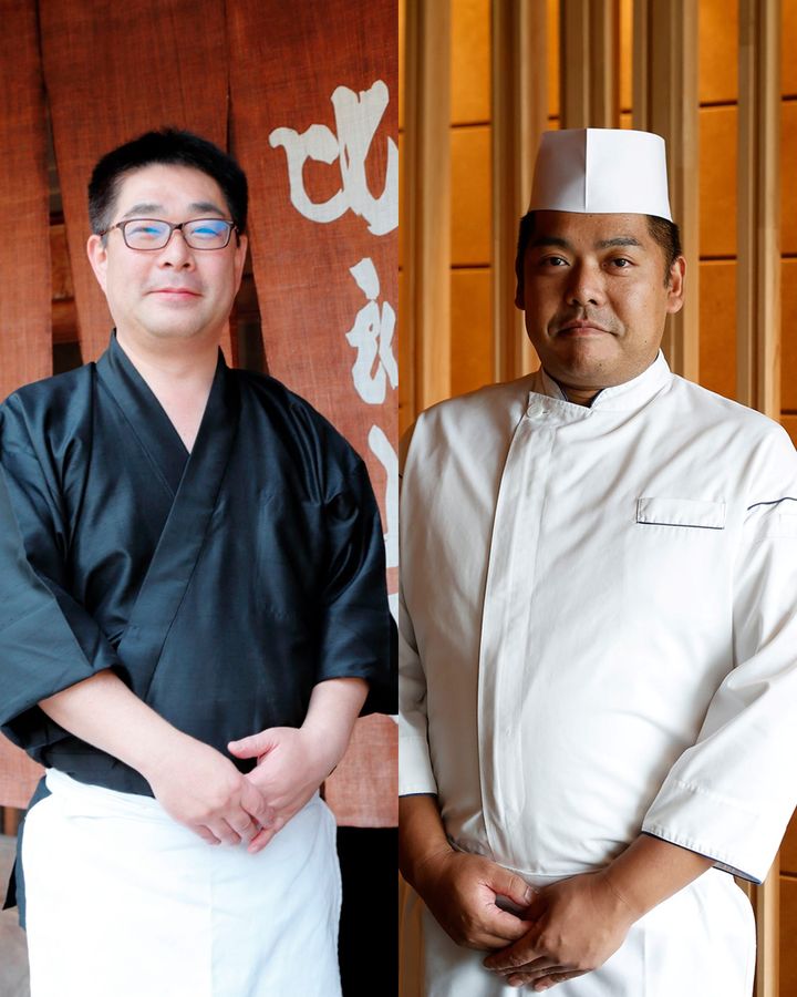 「比良山荘」の伊藤剛治当主(左)と「パレスホテル東京」内の日本料理「和田倉」の泉槙悟料理長(右) Hearst Owned
