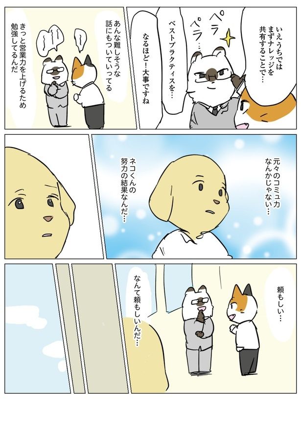 難しい話題にも対応できる後輩のコミュ力が高すぎる! きっとすごく努力したんだよね…?/働く!くよくよ犬②