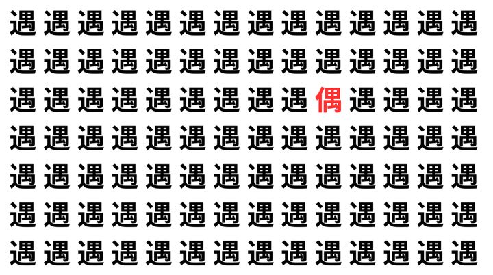たくさんの「遇」の中に、よく似た別の漢字が1文字だけ隠れています。