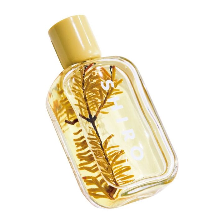 8種類くらいの香りの中から好きな香りを選び、中に浮かべるハーブが選べるオリジナルのフレグランス。「SHIROのフレグランスは韓国の聖水店で作りました。ムスクでお気に入り。出社の日はもちろん、在宅でもつけています」