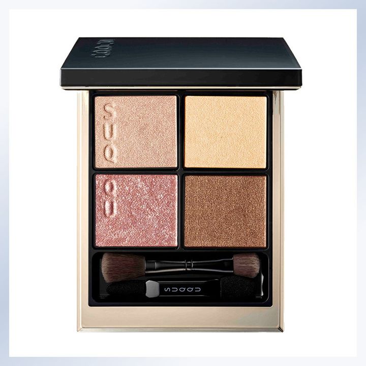 粉飛びしづらい繊細でしっとりしたパウダーにより、4色をレイヤードしてもまぶたの肌の一部かのような薄膜感をキープ。ベージュ~ブラウンのグラデーションにコーラルピンクニュアンスの入ったワントーンパレットで、ベーシックながらも目を引く印象に。