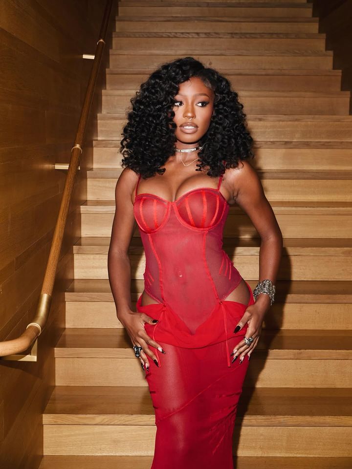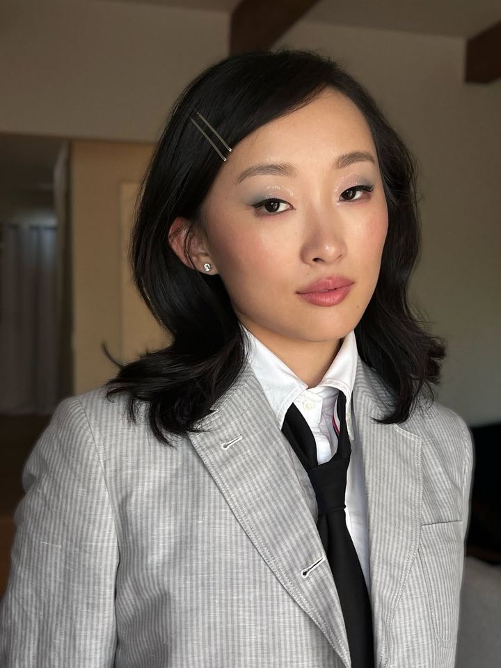 髪が長くなくて高い位置でポニーテールにできない場合は、ゆるめの毛束と顔を囲むレイヤーを入れた、意図的にピース感のあるアップスタイルがおすすめ。どんな長さの髪でも洗練された雰囲気に!
