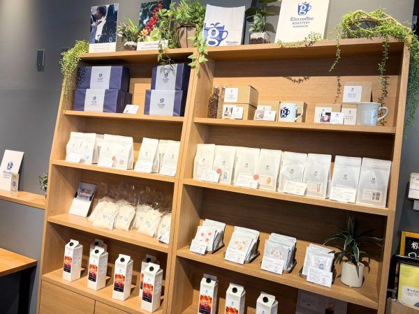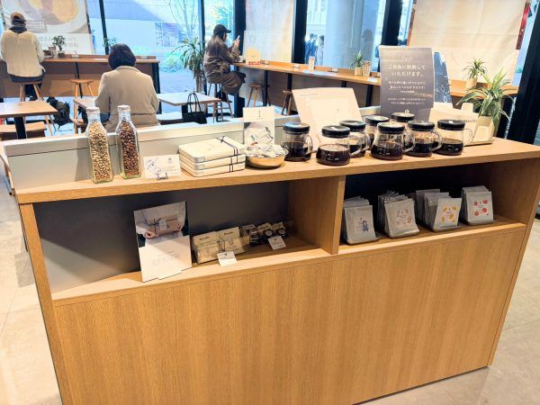 店内には、こだわりの珈琲豆や、ティーパック、オリジナルグッズも販売しているので、プチギフトや手土産にも良さそう。