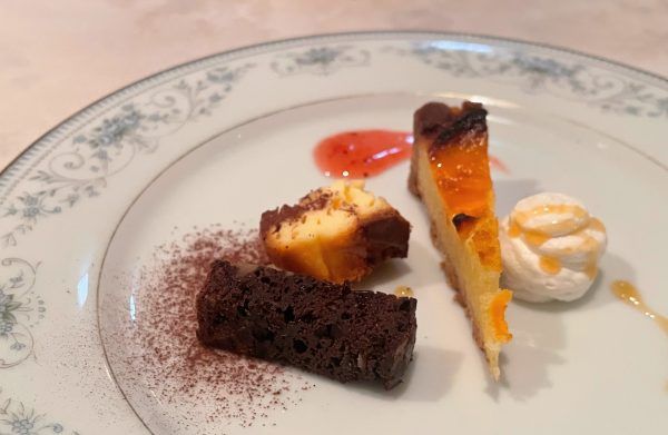 ケーキは、手前から「胡桃のガトーショコラ」・「桃のタルト」・「チーズケーキ」の苺ソースのせです。 ほんのりビターなガトーショコラは濃厚で大人の味。タルト生地がサクッと軽い桃のタルトも爽やかで美味しい! しっとりなめらかなチーズケーキは、コーヒーとの相性もよく、一皿で贅沢なケーキセットを味わいました。