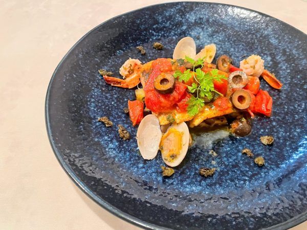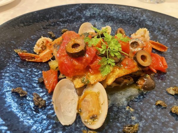 ひと口いただくと…香ばしく焼かれた鯵の皮と、ふっくらとした身のやわらかさが 口の中でとろけて美味しい~! 黒オリーブがアクセントとなり、トマトの酸味も相まってまさに地中海の風を感じる上品なひと皿をいただきました!