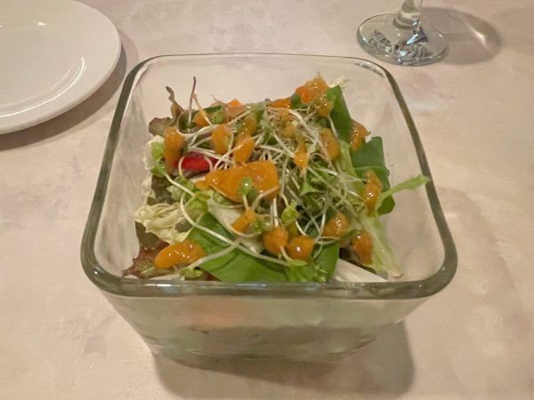 しょうゆベースのソースがかかったこちらのサラダ。シャキシャキの野菜とソースが絡まって美味~!