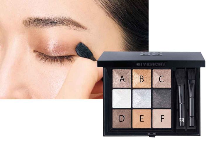 3.小ブラシの先端にDを取り、上まつ毛のキワに沿ってライン的に入れます。目尻側をやや太めに入れると自然に引き締まった仕上がりに。ル・ヌフ・ジバンシイ No.16 ¥8,360(パルファム ジバンシイ)※限定発売