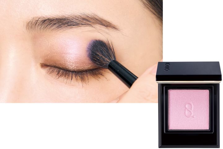 目元がスモーキーになりすぎた時などは、トレンドの青みピンクが救世主。黒目の上と下まぶたに、入っているかいないか分からない程度に重ねれば、スモーキーなアイメイクに柔らかなニュアンスと女らしさがプラスされます。大人の目元に繊細な光を。SUQQU モノ ルック アイズ S-04 愛映 -ITOUTSUSHI ¥4,290(SUQQU)