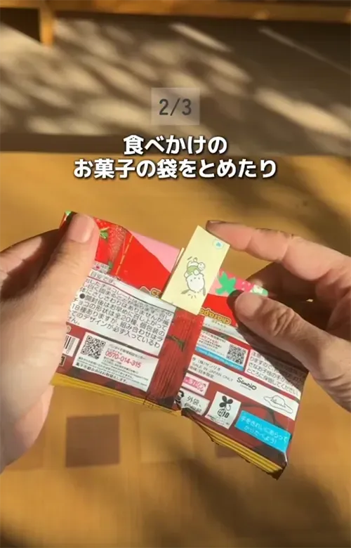 いぶさんが提案するのは、お菓子の箱や包装紙を使った『お手製クリップ』。手帳まわりだけでなく、紙袋やお菓子の袋を留めたり、ラッピングに活用したりできるそうですよ。