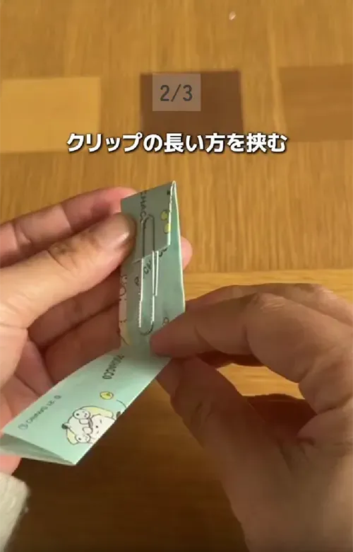 この時、ゼムクリップの長いほうが奥にくるようにするのがポイントです。