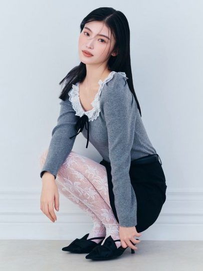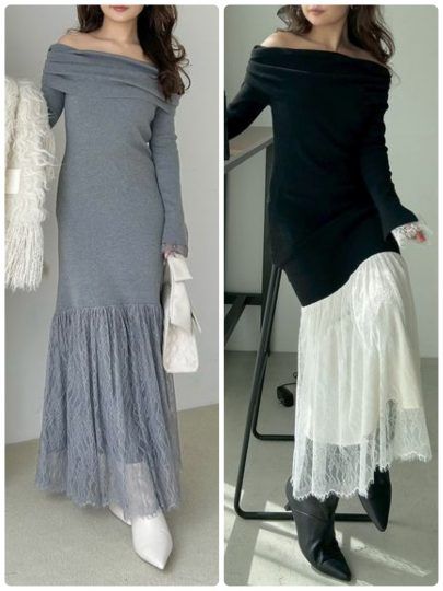 ニットとレース、相反する素材を組み合わせることで