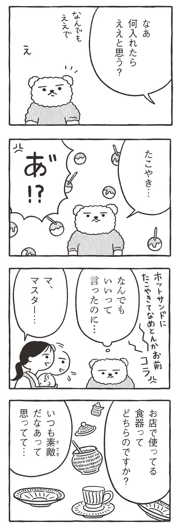 3. ホットサンドのマンネリ化で悩むマスターに、くまさきさんが提案したのはまさかの具材?/くまさきさん④
