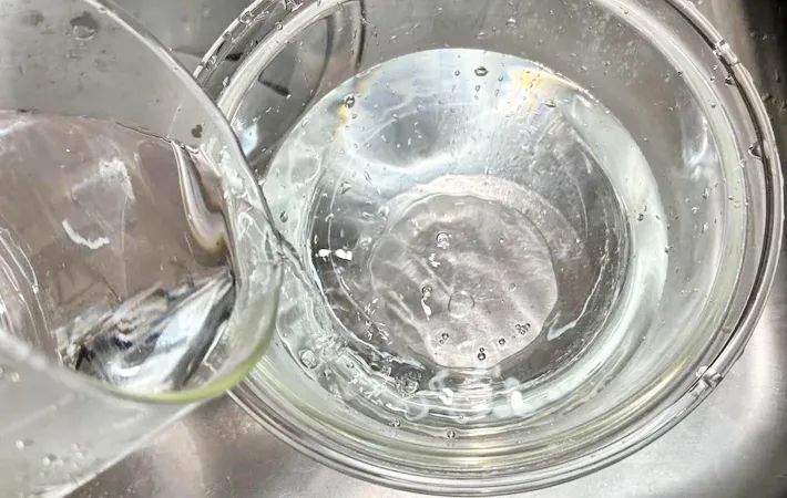 用意するのは、ボウルと水、お湯の3つのみ。