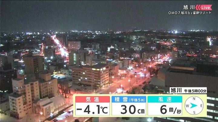 旭川では雪は午後5時頃は弱まっていますが、午後はふぶきが続いています。あす17日(水)にかけて雪が降りやすいでしょう。