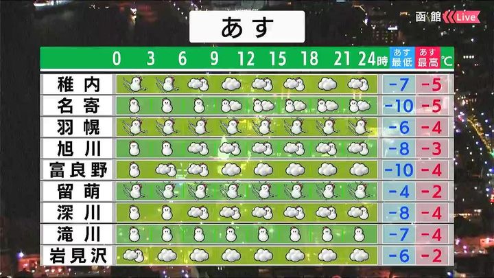 あすも足元はツルツル。そして寒そうですね。5日ぶりに最高気温でもマイナスの真冬日になります。しっかり寒さ対策をしてください。