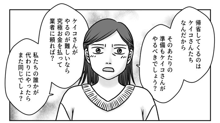私は義父とダイキにあらためて、今回何もしなかった理由を説明しました。私は別に、ケイコさんが嫌いだというわけではありません。義実家と近距離だからという理由で、私に家事労働をしてもらって当たり前だと思っているケイコさんの考えを、拒否しているのです。